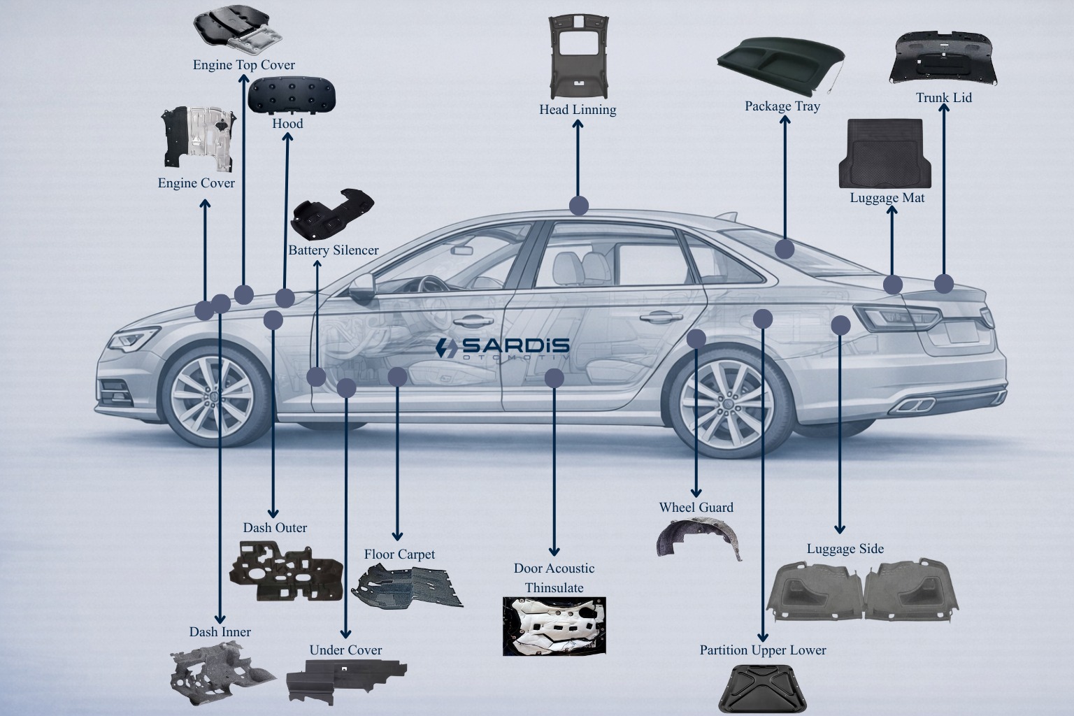 Sardis Otomotiv olarak, farklı yalıtım malzemelerinin belirli sıcaklıklarda ısıtılarak istenen forma dönüştürüldüğü yüksek hassasiyetli şekillendirme çözümleri sunar.